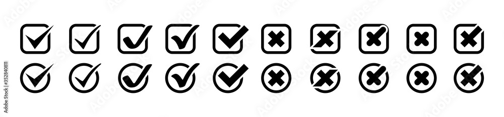 Wall mural : Check marks with crosses vector icons big collection - check marks with crosses different shapes, iso