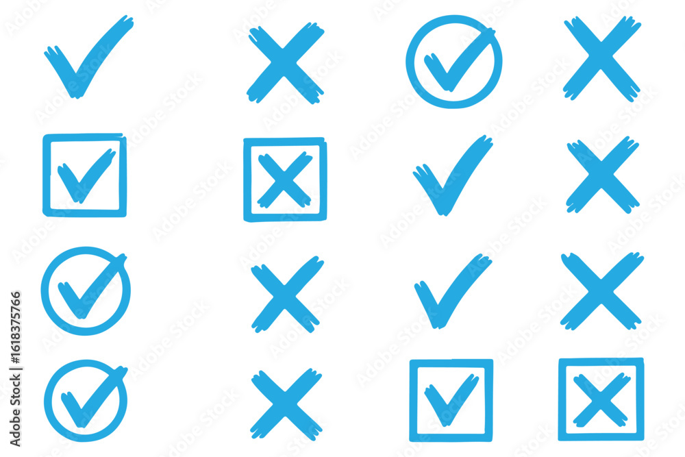 Wall mural check tick mark icon set. cross box x check mark checkbox v list vector draw hand drawn sketch doodl - Wall murals Wall mural check tick mark icon set. cross box x check mark checkbox v list vector draw hand drawn sketch doodl - Wall murals