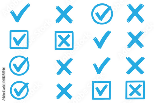 The watermark will not be included on Wall mural.: Check tick mark icon set - cross box x check mark checkbox v list vector draw hand drawn sketch doodl