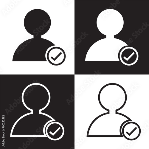 Check user icon vector accept person profile avatar with checkmark yes tick symbol, checked user proWall mural