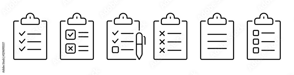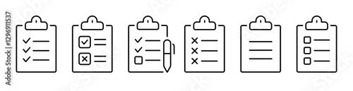 Wall mural checklist thin line icons set. clipboard, checkmark, document, survey, checkbox icon. editable strok - Wall murals Wall mural checklist thin line icons set. clipboard, checkmark, document, survey, checkbox icon. editable strok - Wall murals