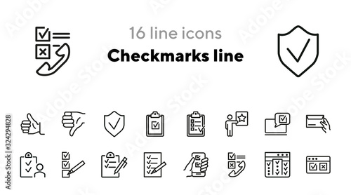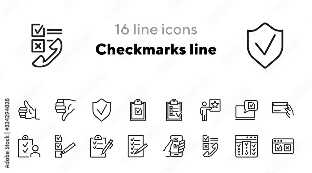 Wall mural checkmarks line icons. set of line icons. checkboxes and telephone receiver, checklist, clipboard. a - Wall murals Wall mural checkmarks line icons. set of line icons. checkboxes and telephone receiver, checklist, clipboard. a - Wall murals