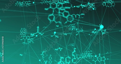 Wall mural chemical formulas move in space, science and mathematical research and development concepts. video l