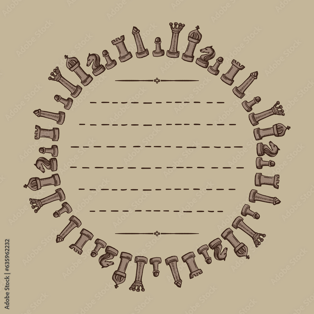 The watermark will not be included on Wall mural.: Chess frame art with assorted chess figures and place for text
