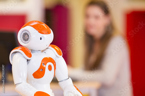 Wall mural child playing and learning with robot - Wall murals Wall mural child playing and learning with robot - Wall murals