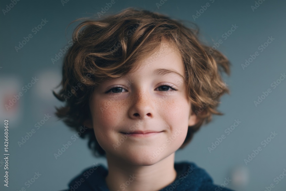 The watermark will not be included on Wall mural.: Child smiling in front of blurred background capturing essence of teamwork
