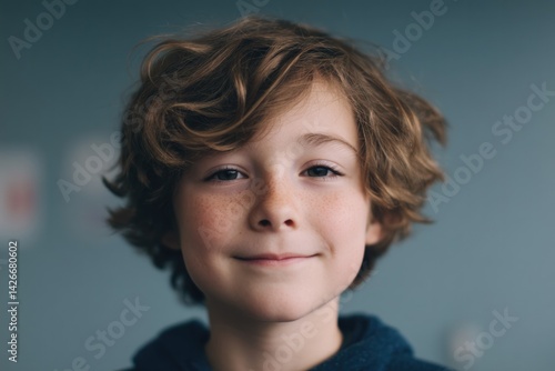 Wall mural child smiling in front of blurred background capturing essence of teamwork - Wall murals Wall mural child smiling in front of blurred background capturing essence of teamwork - Wall murals