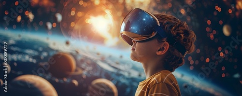 Wall mural children exploring space and planetary systems through apps for educational and curiosity driven lea - Wall murals Wall mural children exploring space and planetary systems through apps for educational and curiosity driven lea - Wall murals