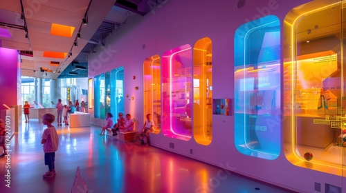 Wall mural childrena??s science museum with interactive energy-efficient windows that change transparency to de