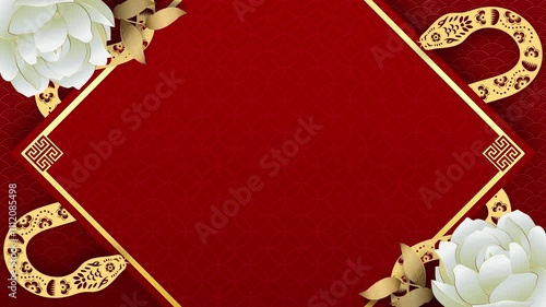 Wall mural chinese new year red background for 2025 year of snake with copy space for text and oriental style d