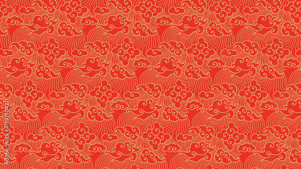 The watermark will not be included on Wall mural.: Chinese pattern texture with abstract clouds with red background