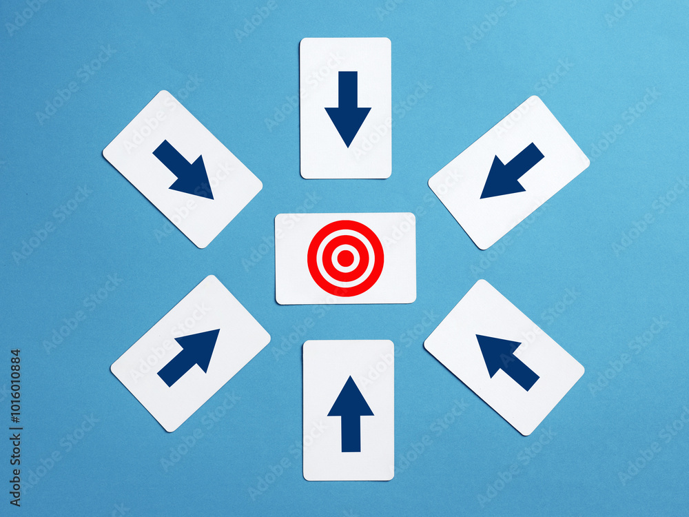 The watermark will not be included on Wall mural.: Choosing right way concept with arrows pointing to target