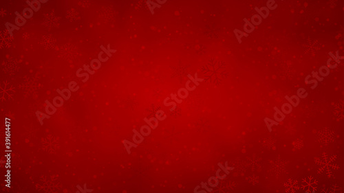 Wall mural christmas background of snowflakes of different shapes, sizes and transparency in red colors