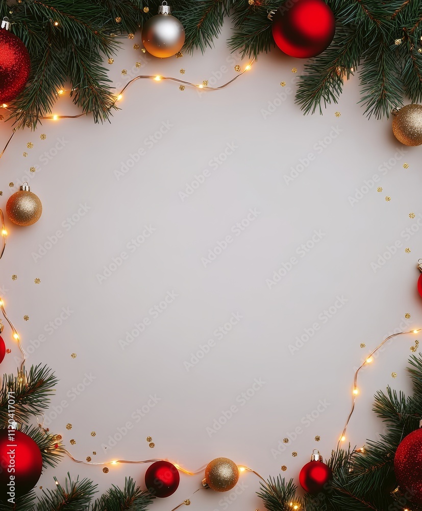 Wall mural christmas background with festive decorative decoration elements. christmas tree branches with light - Wall murals Wall mural christmas background with festive decorative decoration elements. christmas tree branches with light - Wall murals