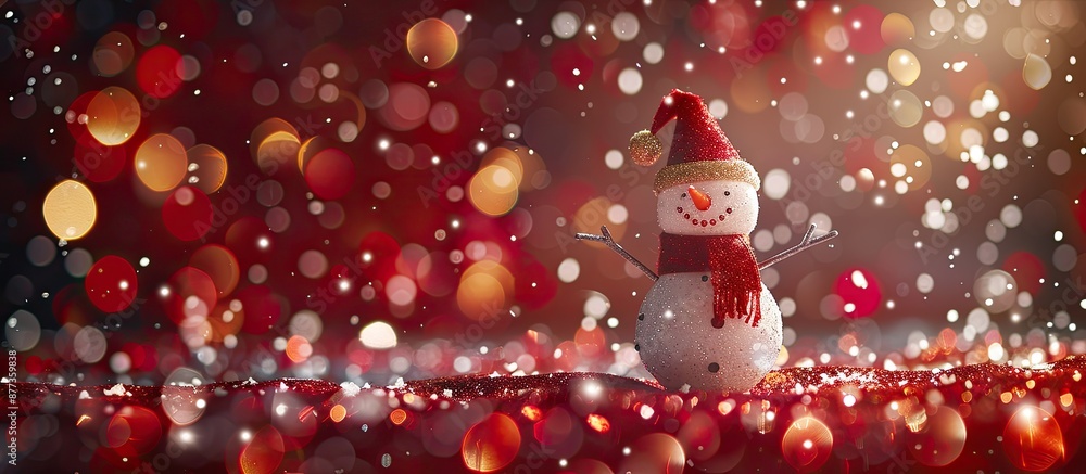 Christmas card with calligraphic font and space for text alongside an adorable snowman in a sparkly Wall mural
