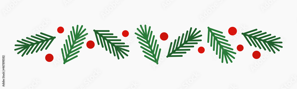 The watermark will not be included on Wall mural.: Christmas fir branches and red berries border for design -