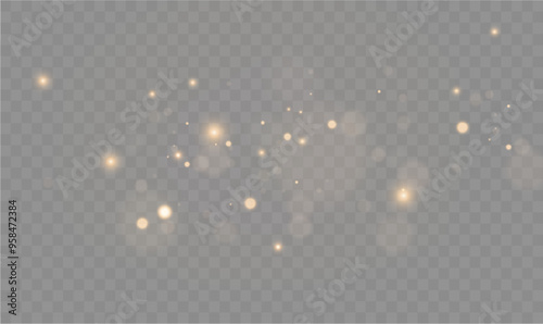 Wall mural christmas glowing light confetti and spark overlay. shimmering dust golden dust sparks. bokeh lights