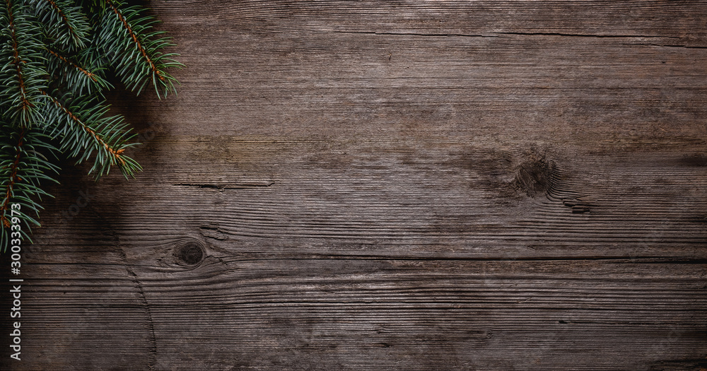 Wall mural christmas green frame from fir branches on a vintage gray board background. frame of fir branches. c - Wall murals Wall mural christmas green frame from fir branches on a vintage gray board background. frame of fir branches. c - Wall murals