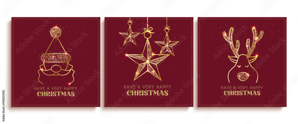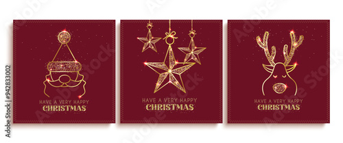 Wall mural christmas greeting card vector poster set design. merry christmas and happy new year greeting text w