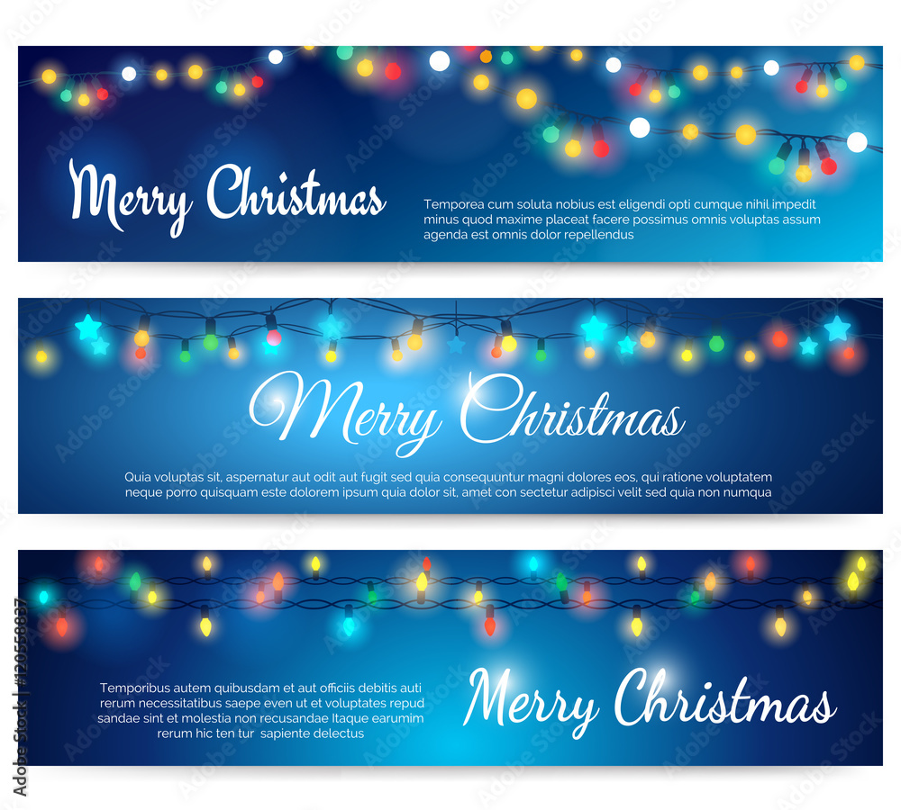 The watermark will not be included on Wall mural.: Christmas header with string lights - xmas or merry christmas blue banners with garland bulb lights v