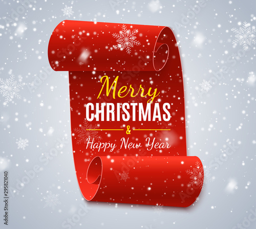 The watermark will not be included on Wall mural.: Christmas tag isolated with snow - red vector banner - merry christmas and happy new year label - vecto