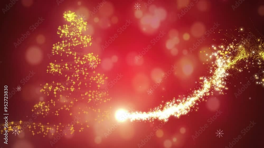 Wall mural christmas tree and sparkling light trail animation over red background with bokeh - Wall murals Wall mural christmas tree and sparkling light trail animation over red background with bokeh - Wall murals