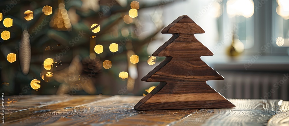 The watermark will not be included on Wall mural.: Christmas tree shaped wooden box with copy space image