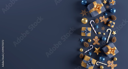 Wall mural christmas white background with christmas balls and decoration - 3d rendering