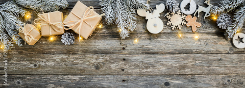Wall mural : Christmas wooden natural decoration ornament wide horizontal banner with copyspace