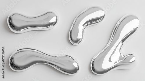 The watermark will not be included on Wall mural.: Chrome blobs on white backdrop studio shot showcasing liquid metal shapes abstract design concept ar