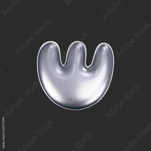 The watermark will not be included on Wall mural.: Chrome liquid 3d flower shape in y2k style isolated on a dark background - render of 3d metal silver