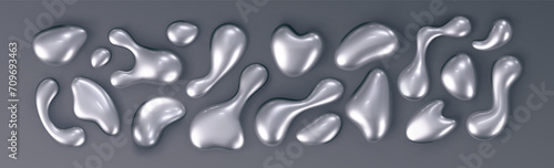 The watermark will not be included on Wall mural.: Chrome liquid 3d shapes in y2k style isolated on a black background - render of 3d metal silver eleme