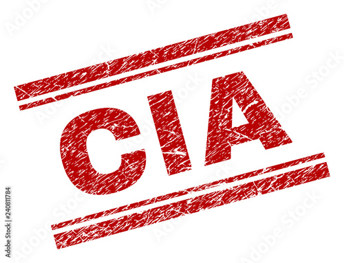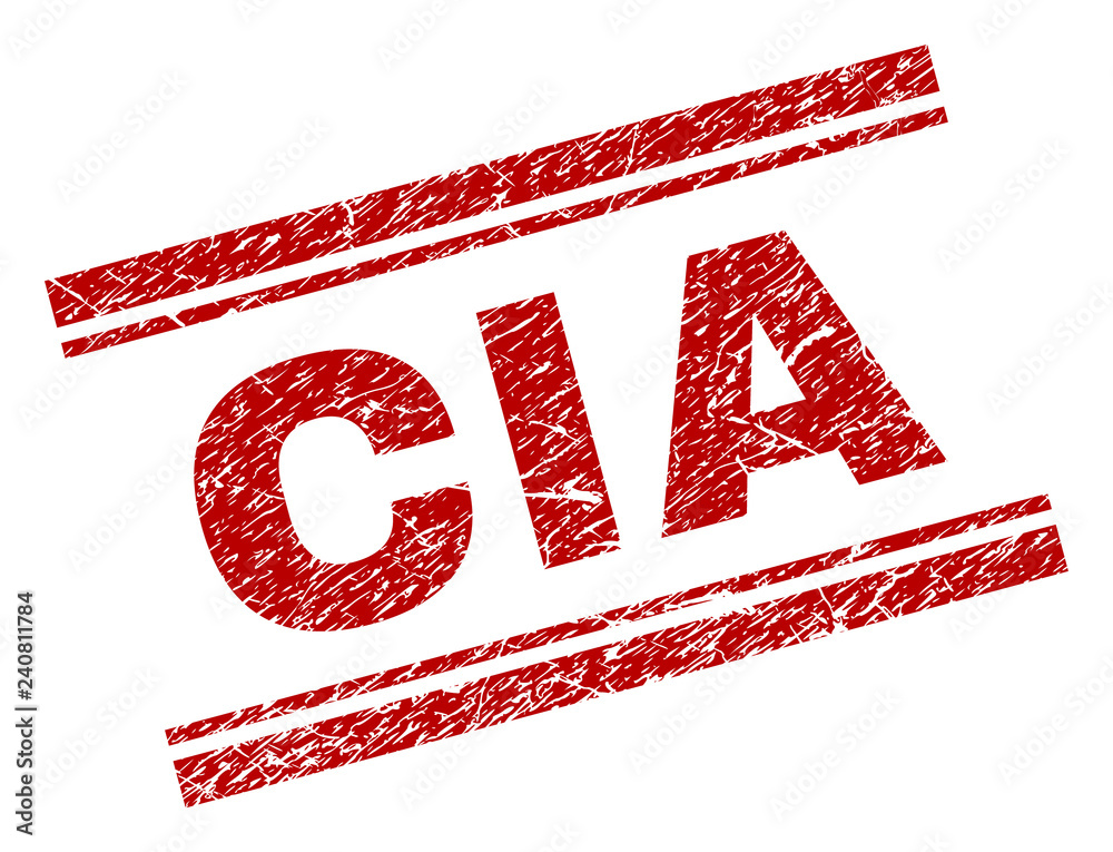 The watermark will not be included on Wall mural.: Cia seal print with distress texture - red vector rubber print of cia label with dirty texture - text