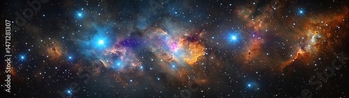 Wall mural cinematic view of deep space clouds with sparkling clusters and colorful ionized gases.