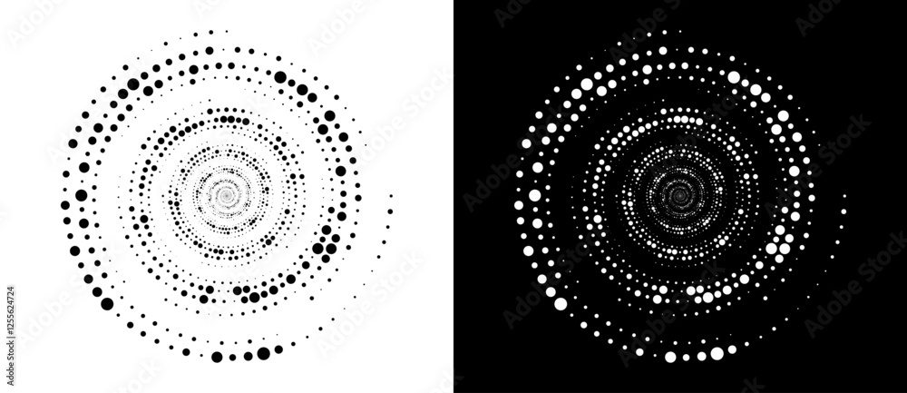 The watermark will not be included on Wall mural.: Circle abstract background with dynamic halftone dots in spiral - black shape on a white background a