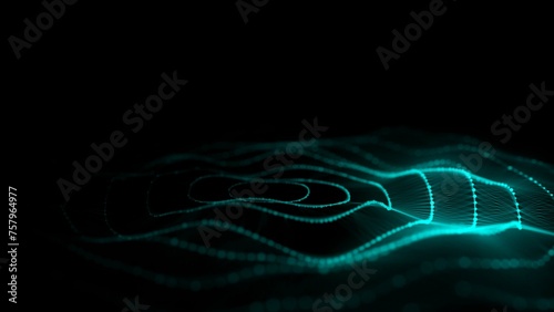Wall mural circle blue wave of particles. abstract background with a dynamic wave. 3d rendering.