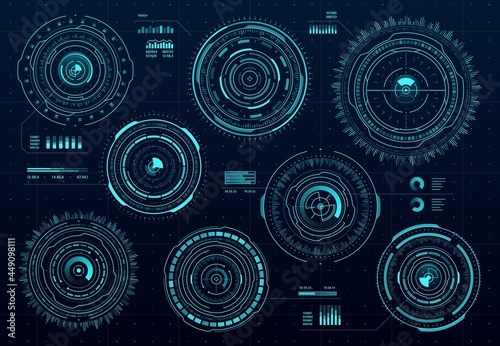 Wall mural circle futuristic hud digital interface, data screen dashboard, vector round frames and borders. hud - Wall murals Wall mural circle futuristic hud digital interface, data screen dashboard, vector round frames and borders. hud - Wall murals