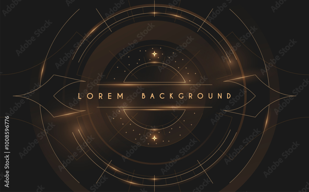 Wall mural circle golden lines frame on black background - Wall murals Wall mural circle golden lines frame on black background - Wall murals