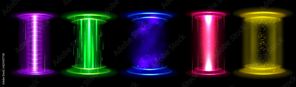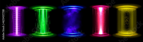 Circle light effect magic game hologram portal - neon energy orb beam podium for teleport with starduWall mural