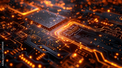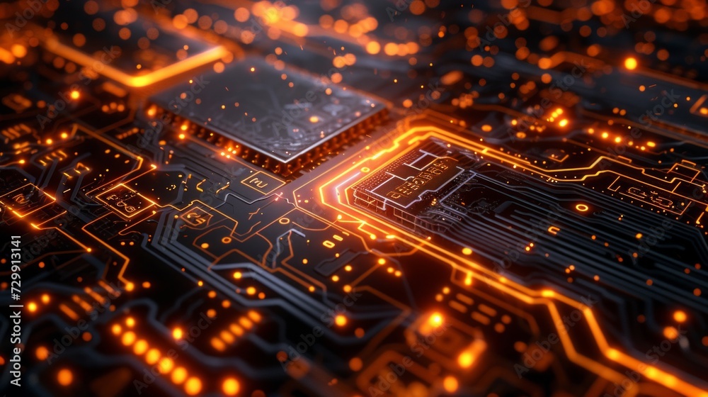 The watermark will not be included on Wall mural.: Circuit board-inspired patterns with glowing circuits and digital elements