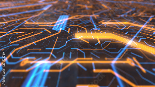 Wall mural circuit board technology computer processing data network - conceptual 3d render graphic
