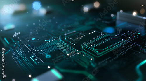 Wall mural circuit board: an abstract macro shot of a cutting-edge circuit board, its intricate pathways glowin - Wall murals Wall mural circuit board: an abstract macro shot of a cutting-edge circuit board, its intricate pathways glowin - Wall murals