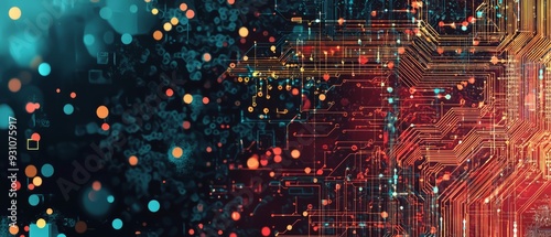 The watermark will not be included on Wall mural.: Circuit patterns with tech elements, background, generative ai