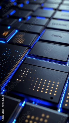 The watermark will not be included on Wall mural.: Circuitry glow: a captivating macro shot of a futuristic circuit board, illuminated by vibrant blue