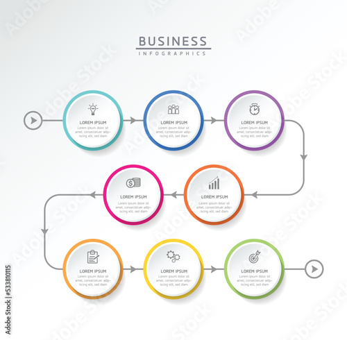 The watermark will not be included on Wall mural.: Circular connection steps business infographic template with 8 element