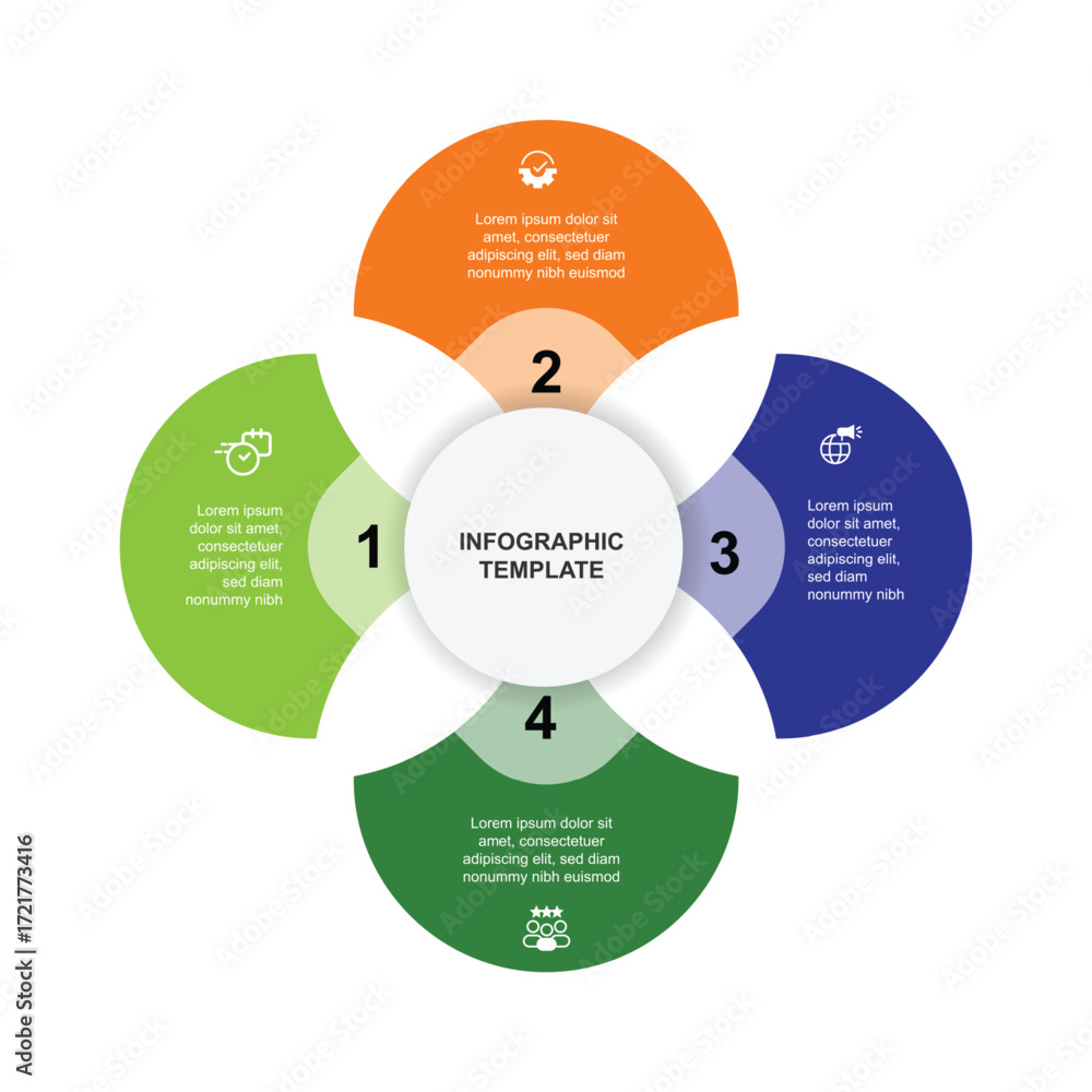 Circular infographic element with 4 step process and icons suitable for business information, diagraWall mural