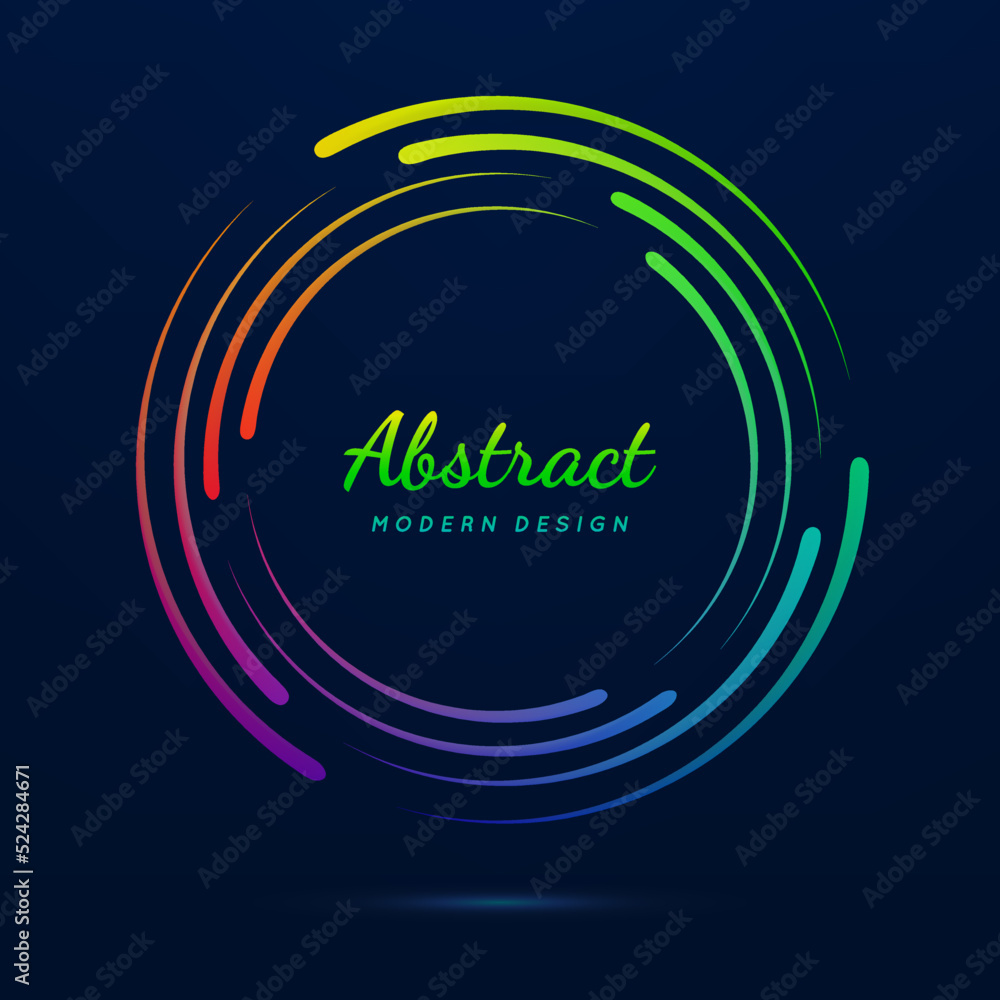 The watermark will not be included on Wall mural.: Circular line frame - faded neon circle - abstract halftone spinning pattern - fading gradient wavy - fa