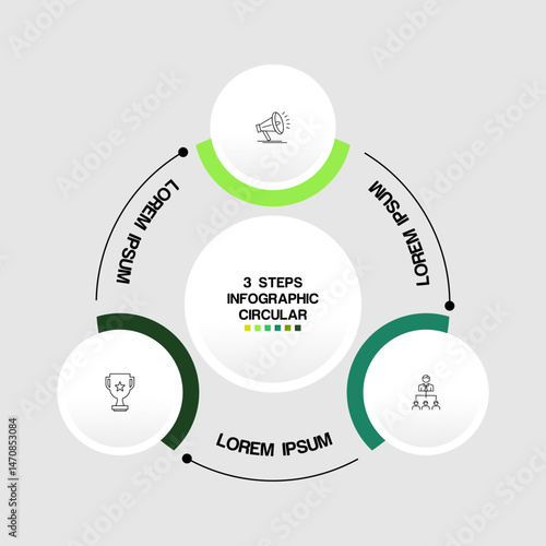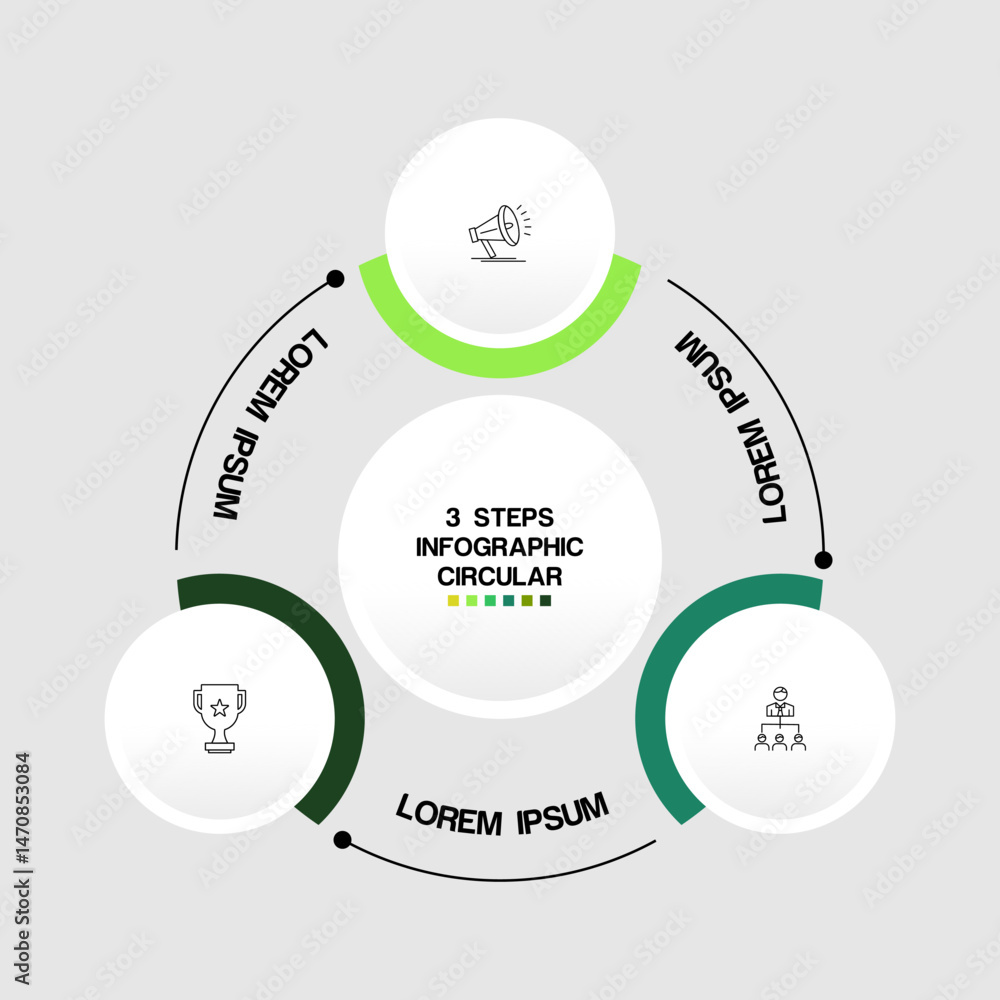 Wall mural circular scheme with three round paper white elements. concept of cyclic business process with 3 sta