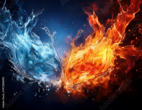 Wall mural : Clash of ice and fire visual metaphor of ice and fire battling symbolizing passion and introspection