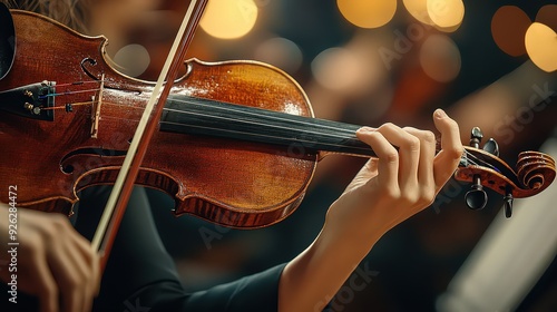 The watermark will not be included on Wall mural.: Classical concert with musicians playing string instruments on a grand stage -